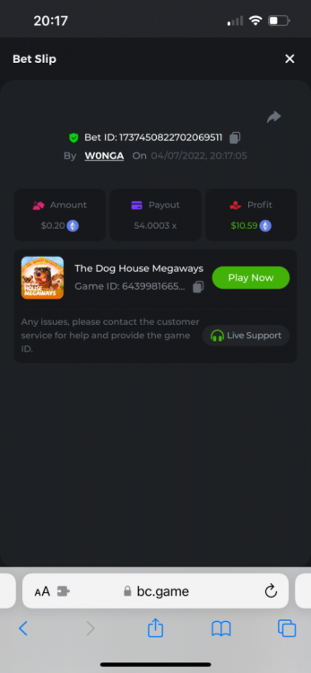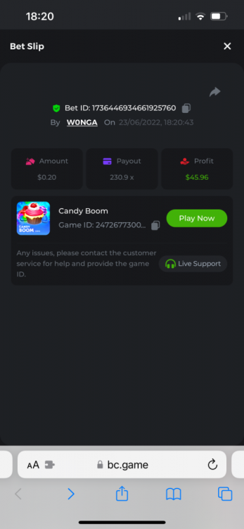 I just need to get this message out there as I can’t reply to the past contest which was closed. I feel that how the outcome was calculated was not accurate. The bounty was to hit 51x exact. However many still claimed the prize for getting 51.4 or 51.2 for example. I do realise that there was a case where one got 51.0008x or so which is valid. But the others in my opinion should have been voided. Ultimately it’s down to bc to decide, but for me it’s a big deterrent to continue playing, pausing, screenshot , copying bet links and updating the forum by navigating through pages of posts as well as waiting a week to claim a prize. I would love to see some investment in such competitions to automate this. Get a public leaderboard on your homepage. It will attract more users. One last suggestion, create a poll and let the ‘community’ decide on the slot providers. -