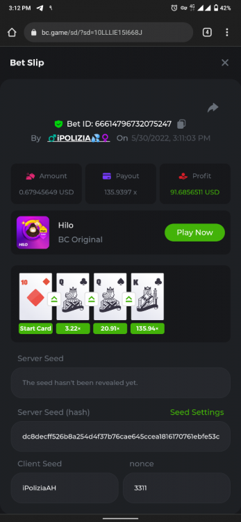 POLIZIA replied to BCGame_Maxim's topic in VIP Challenges