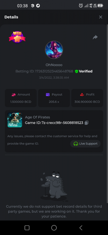22. Golden Dancing Lion x 177.2 Betting ID: 1724947781266571904 Hit the Gold! x 44.8 Betting ID: 1724948222505448576 Tiger Jungle x 93 Betting ID: 1725143498319811079 Solar Queen x 47 Betting ID: 1725006049288958592