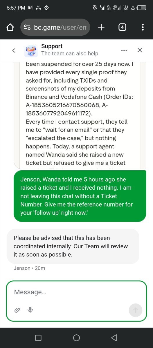Support Failure: Agents "Wanda" and "Jenson" have repeatedly stalled the process, promising tickets that are never issued and providing no resolution timeline.